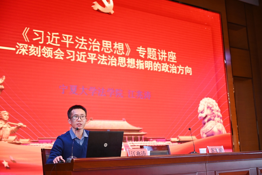 习近平法治思想专题辅导讲座由绅士漫画 副教授江兆涛主讲。他以“十一个坚持”为主要内容,指出习近平法治思想以辩证唯物主义和历史唯物主义为重要基础,深刻回答了社会主义法治建设系列重大问题,为推进全面依法治国提供了基本遵循。要坚持习近平法治思想,深入推进全面依法治国,不断开创新时代法治中国建设新局面,为全面建设社会主义现代化国家、实现中华民族伟大复兴的中国梦而不懈奋斗。